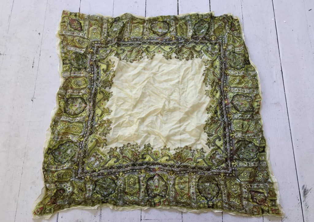 Square handkerchief, green print.