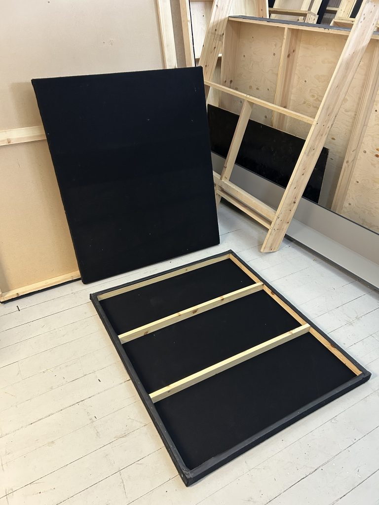 Small wooden flats, covered in black felt.
