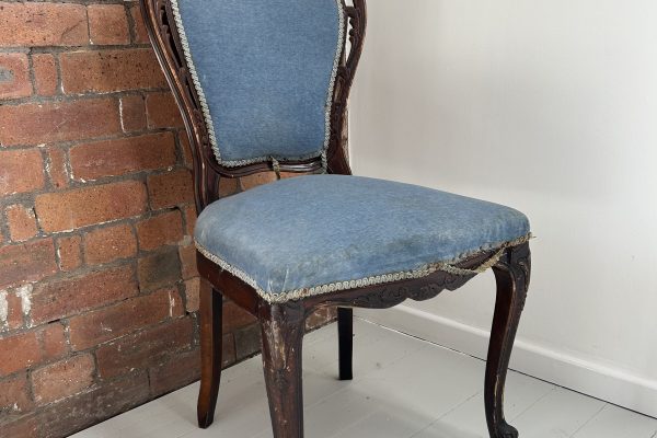 Wooden Chairs with Blue Upholstery x3