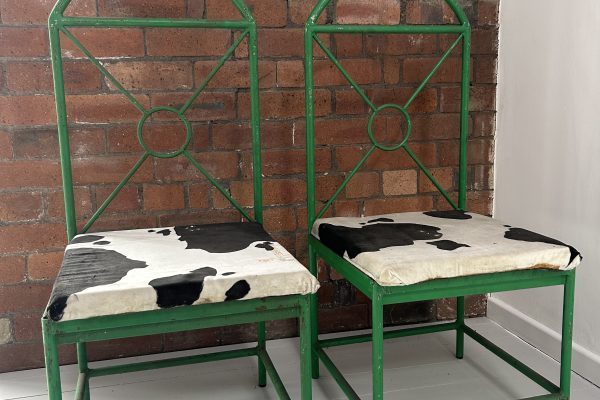 Metal Green Cow Print Chairs x2