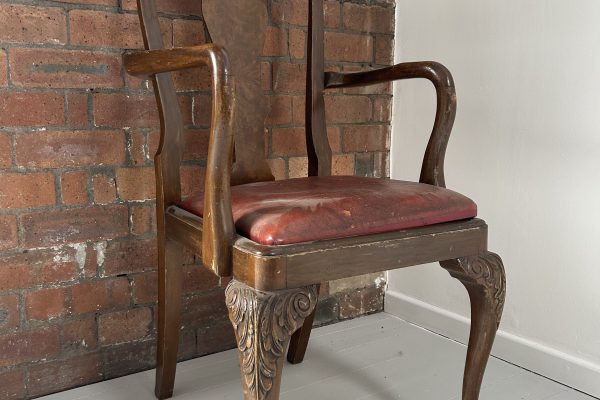 Wooden Armchair with Red Cushion